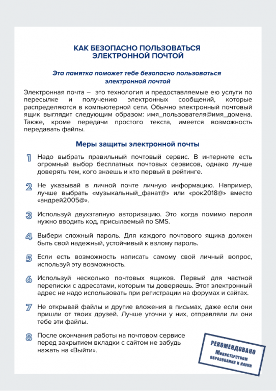 Основные советы по безопасной работе с электронной почтой: