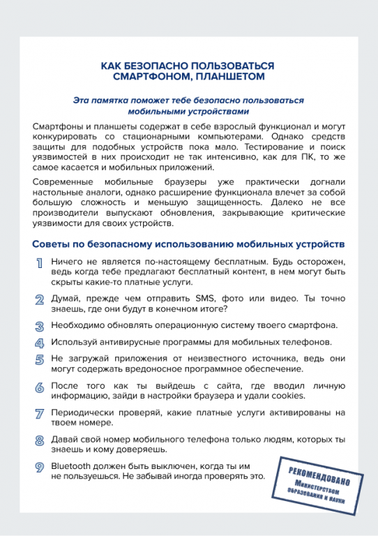 Как безопасно пользоваться смартфоном, планшетом (скачать) (посмотреть)